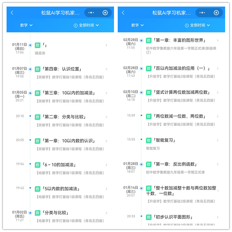 然而,孩子在使用11天后,才告诉赵女士:“学的东西没有用。”并表示不想再去学习中心学习。随即,赵女士查询孩子的松鼠Ai学习机后台数据才发现,学习机推送的内容是“10以内数的认识”“10以内的加减法”“百以内加减法的应用”“两位数减一位数、两位数”等小学一、二年级的学习内容。对于即将中考的初中生来说,这些内容显然没有任何帮助。
