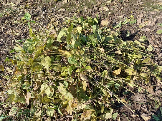 10月22日,是近段时间来难得的晴好天气。趁着天好,村民在地里抢收一点大豆。“你望望这哪有豆子,连个种子都收不回来,光有豆荚没有豆粒”,年近80的刘老太一边割着豆子一边埋怨老伴儿。